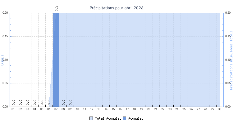 | Total | 8.2 °C | 23.3 °C | 15.6 °C | 6.2 km/h (41.8 km/h) | 0.2 mm | |