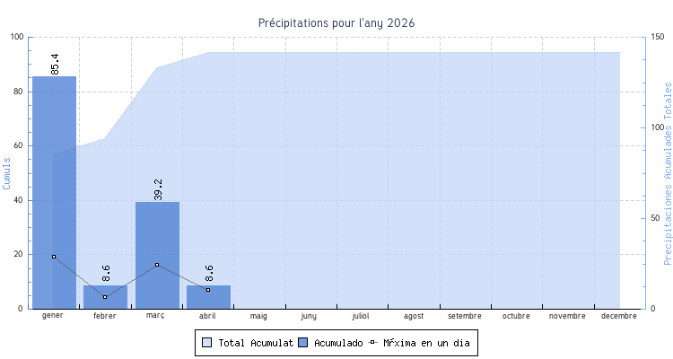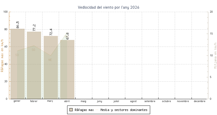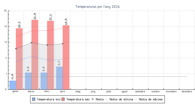 | abril | 3.7 °C | 6.5 °C | 19.5 °C | 18.3 °C | 12.4 °C | 15.3 km/h | 67.6 km/h | NO |