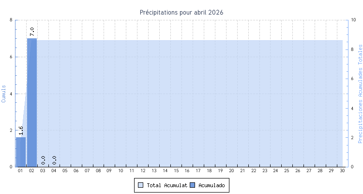 | 01 | 9.4 °C | 16.8 °C | 13.0 °C | 26.4 km/h (67.6 km/h) | N |