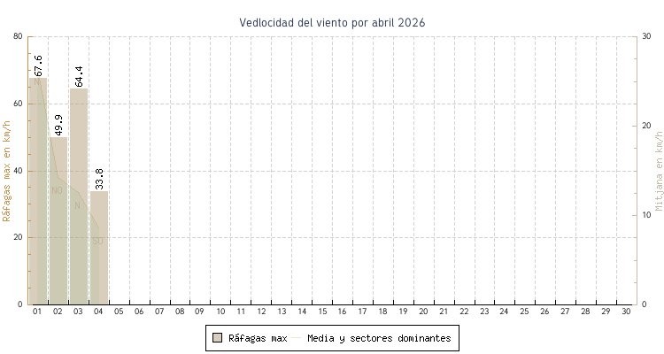 | min | max | mitjana | Velocitat (rafages) | Sector | ||