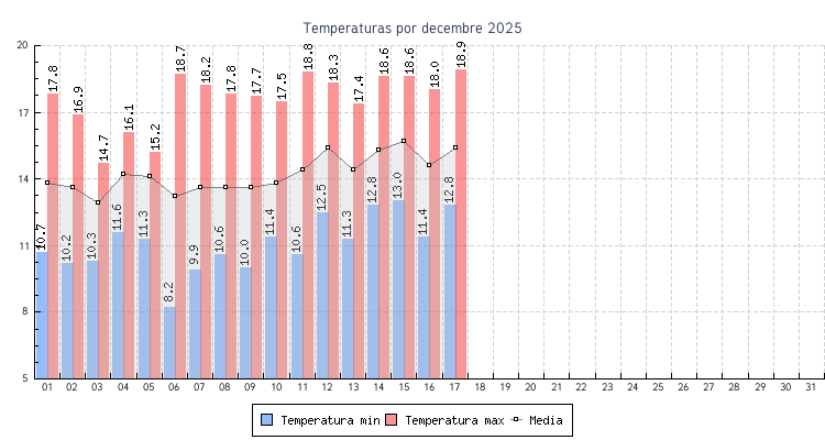 | 01 | 10.7 °C | 17.8 °C | 13.8 °C | 7.9 km/h (35.4 km/h) | NE |