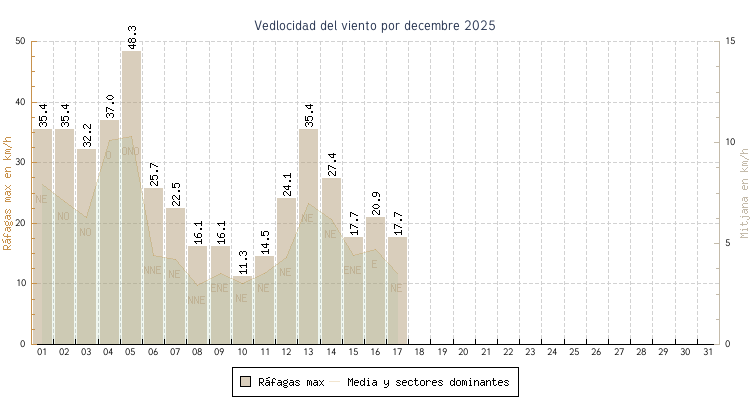 | min | max | mitjana | Velocitat (rafages) | Sector | ||