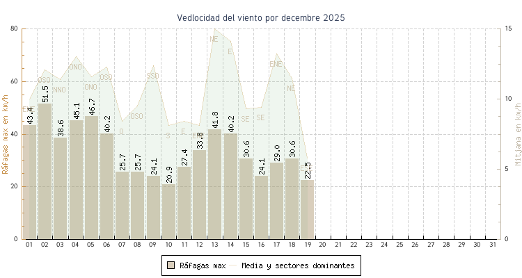 | min | max | mitjana | Velocitat (rafages) | Sector | ||