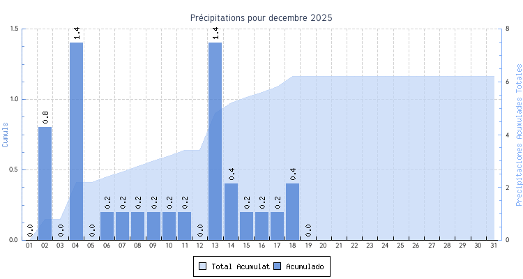 | Total | 4.8 °C | 19.8 °C | 13 °C | 1.9 km/h (27.4 km/h) | 6 mm | |