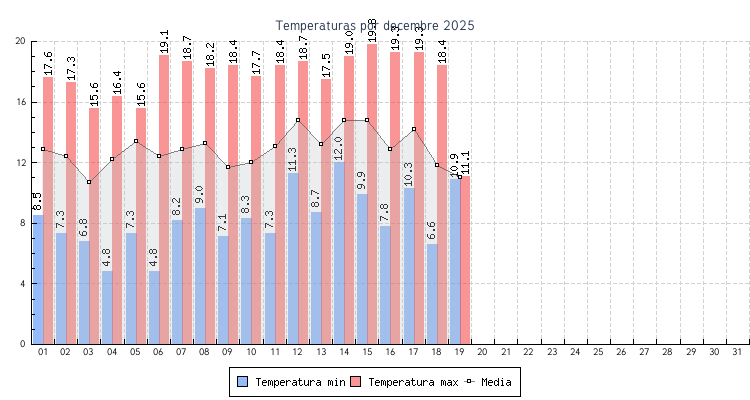 | 01 | 8.5 °C | 17.6 °C | 12.9 °C | 2.9 km/h (20.9 km/h) | E |