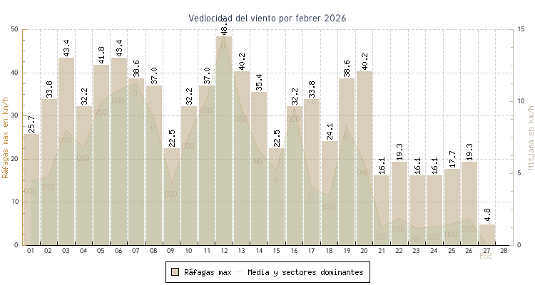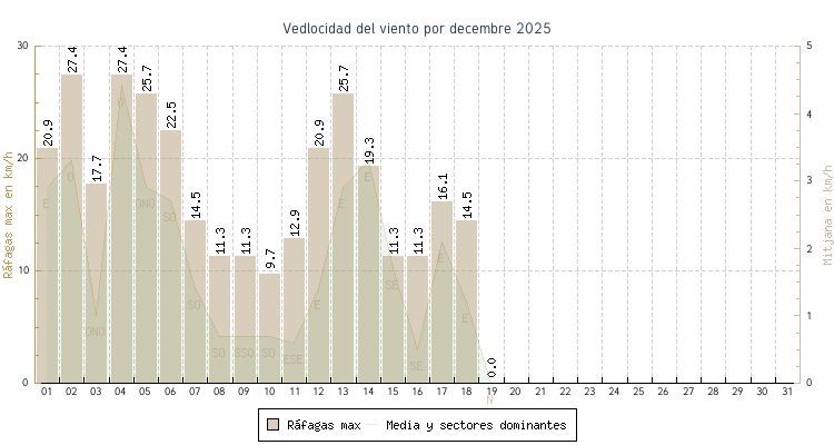| min | max | mitjana | Velocitat (rafages) | Sector | ||