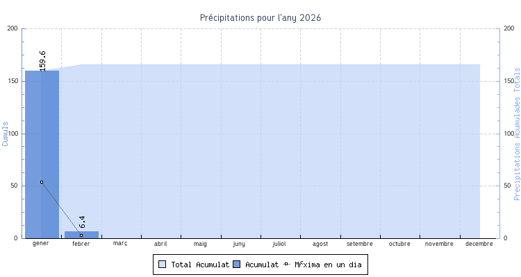 | gener | 5.1 °C | 8.7 °C | 17.7 °C | 14.3 °C | 11.4 °C | 3.8 km/h | 62.8 km/h | ESE |