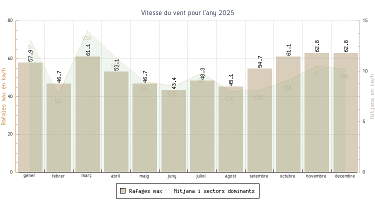 | gener | 6.7 °C | 11.1 °C | 20.4 °C | 16.5 °C | 13.8 °C | 13.1 km/h | 57.9 km/h | O |