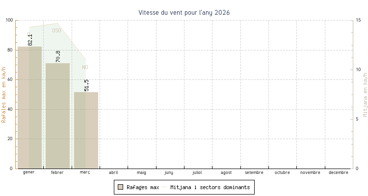 | febrer | 7.4 °C | 11.8 °C | 19.8 °C | 16.9 °C | 14.3 °C | 14.7 km/h | 70.8 km/h | OSO |