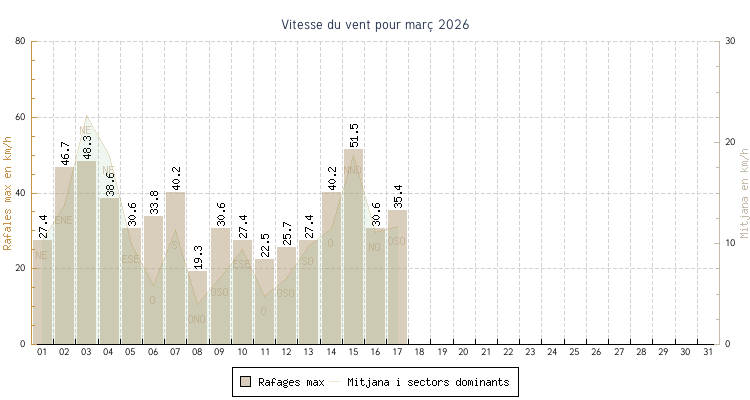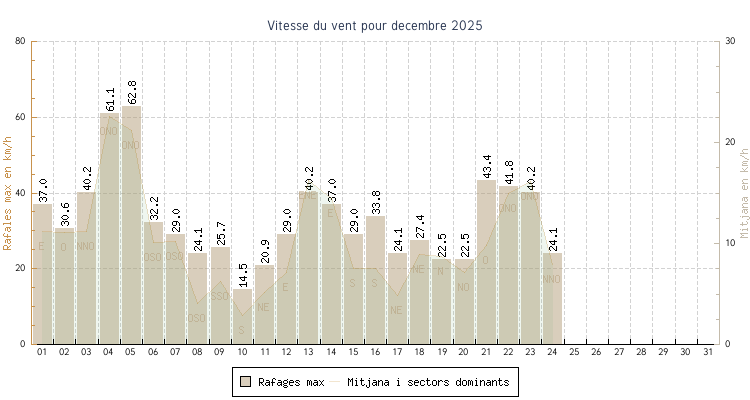 | min | max | mitjana | Velocitat (rafages) | Sector | ||