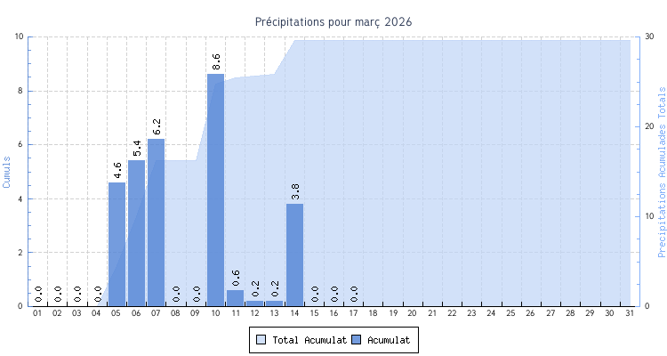 | Total | 9.6 °C | 17.9 °C | 13.7 °C | 11 km/h (51.5 km/h) | 29.6 mm | |