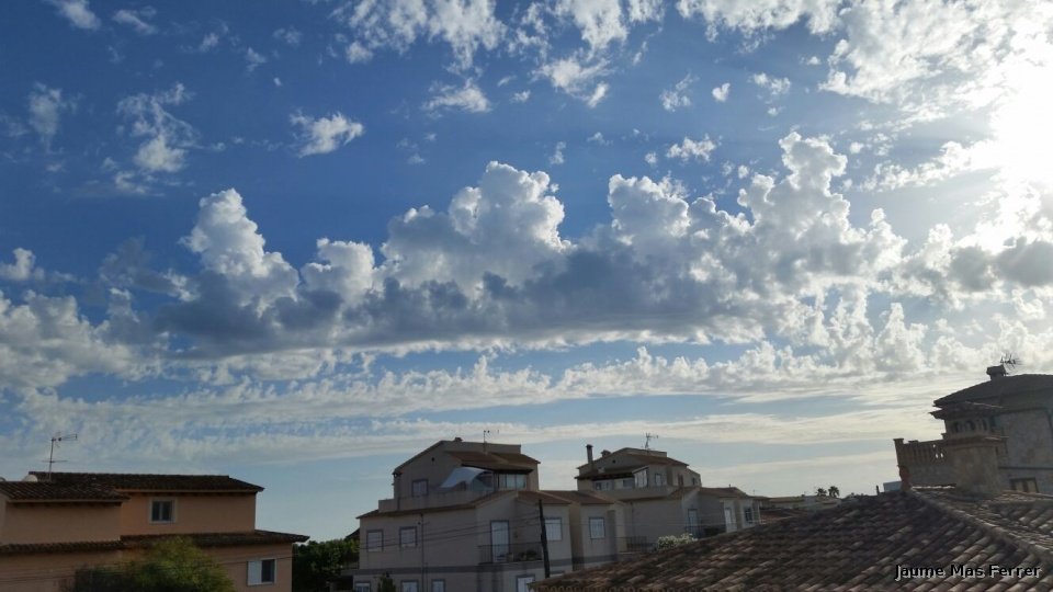 Tarde de agosto con nubes de tipo medio Altocumulos Castellanus, Portocolom 23-08-2015.