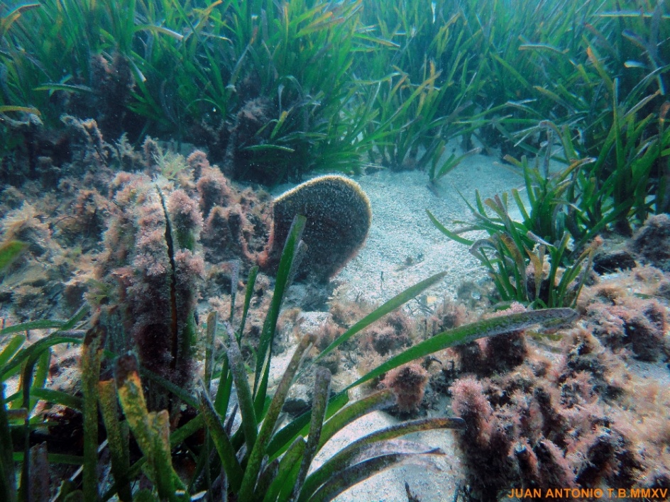 Este es un fondo de posidonia y rocoso con una pequeña nacra. esta a pocos metros de profundidad.