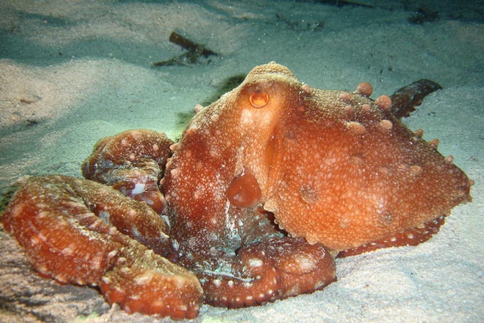 Pulpo de costumbres nocturnas ya que de día se encuentra escondido bajo rocas o cuevas.