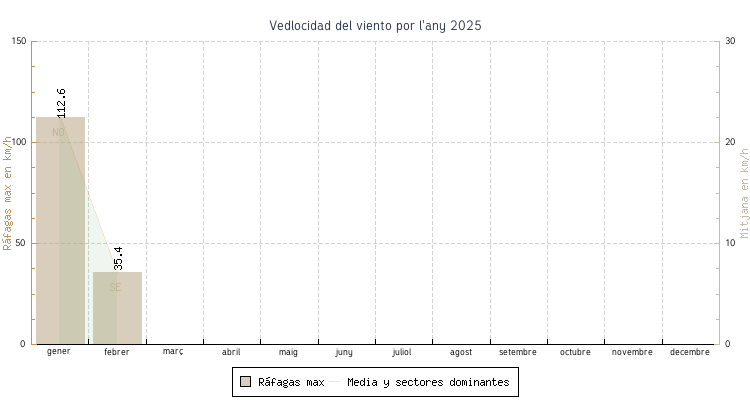 | gener | 0.8 °C | 6.4 °C | 17.5 °C | 10.2 °C | 8.3 °C | 22.5 km/h | 112.6 km/h | NO |