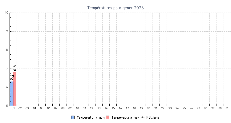| Total | 6.3 °C | 6.8 °C | 6.6 °C | 0 km/h (0.0 km/h) | 0 mm | |