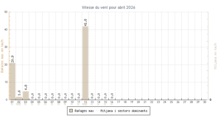 | min | max | mitjana | Velocitat (rafages) | Sector | ||