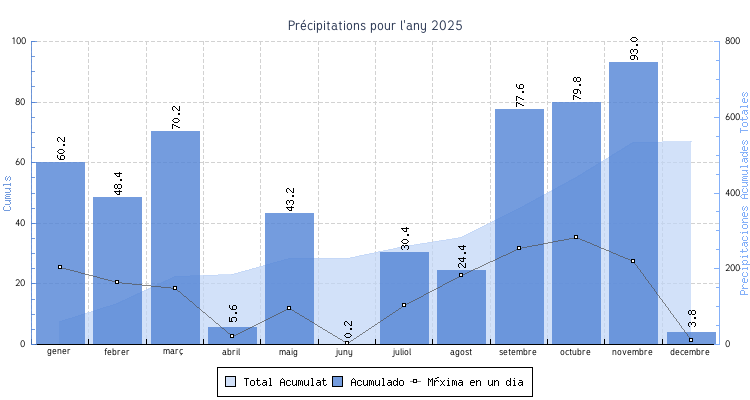 | maig | 10.8 °C | 15.1 °C | 30.3 °C | 24.7 °C | 19.9 °C | 2.1 km/h | 35.4 km/h | ENE |