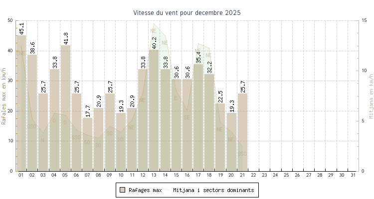 | min | max | mitjana | Velocitat (rafages) | Sector | ||
