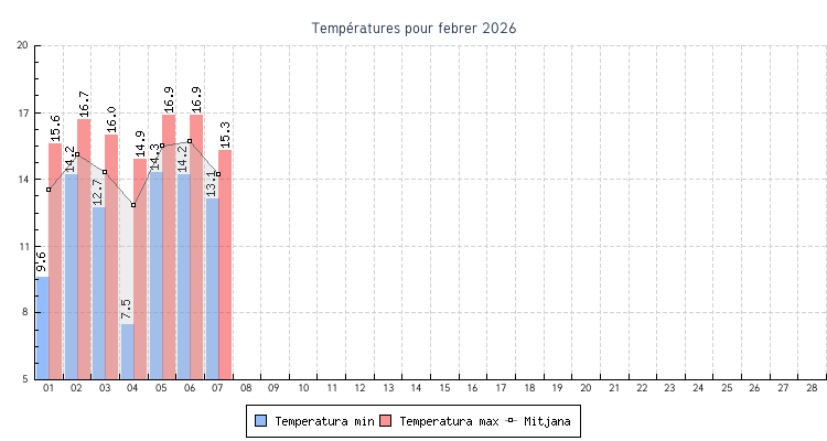 | Dia | Temperatura | Vent | Pluja | |||