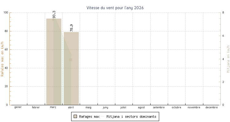 | març | 3.4 °C | 7.3 °C | 14.7 °C | 12.6 °C | 9.2 °C | 7.8 km/h | 93.3 km/h | N |
