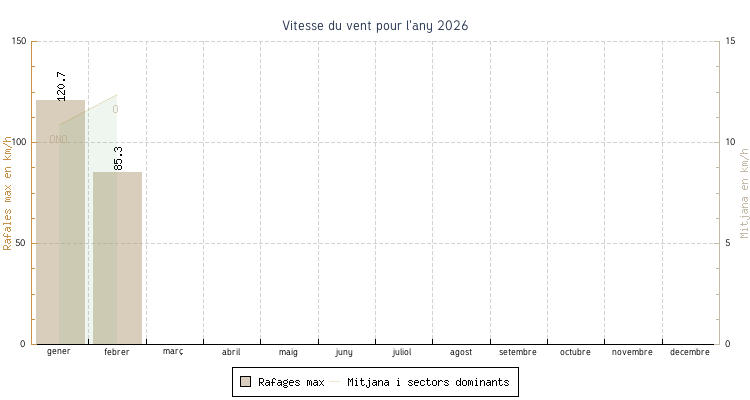 | gener | 3.6 °C | 8.3 °C | 16.5 °C | 13.0 °C | 10.6 °C | 10.9 km/h | 120.7 km/h | ONO |