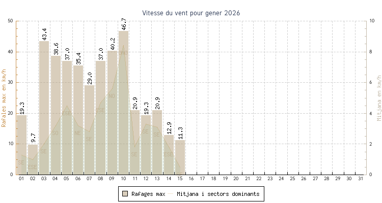 | min | max | mitjana | Velocitat (rafages) | Sector | ||