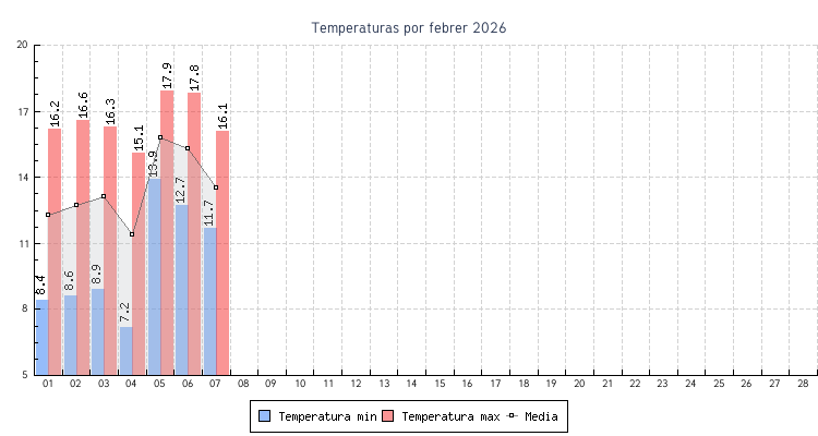 | 03 | 8.9 °C | 16.3 °C | 13.1 °C | 6.8 km/h (59.5 km/h) | SSO |