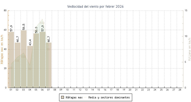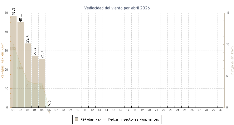 | min | max | mitjana | Velocitat (rafages) | Sector | ||