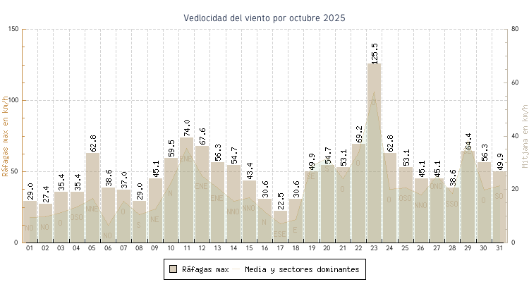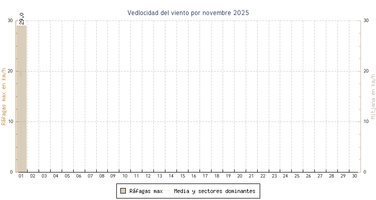 | min | max | mitjana | Velocitat (rafages) | Sector | ||