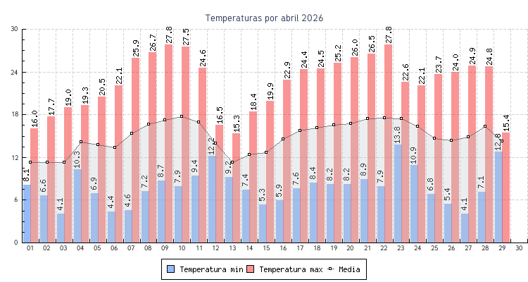 | 09 | 8.7 °C | 27.8 °C | 17.2 °C | 0.8 km/h (14.5 km/h) | SSO |
