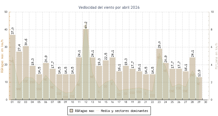 | min | max | mitjana | Velocitat (rafages) | Sector | ||