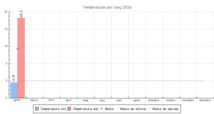 | gener | -0.5 °C | 5.0 °C | 18.3 °C | 13.6 °C | 9.3 °C | 6.4 km/h | 59.5 km/h | ONO |