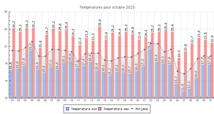| 03 | 17.5 °C | 26.3 °C | 21.7 °C | 5.6 km/h (27.4 km/h) |  SO | 0.0 mm |