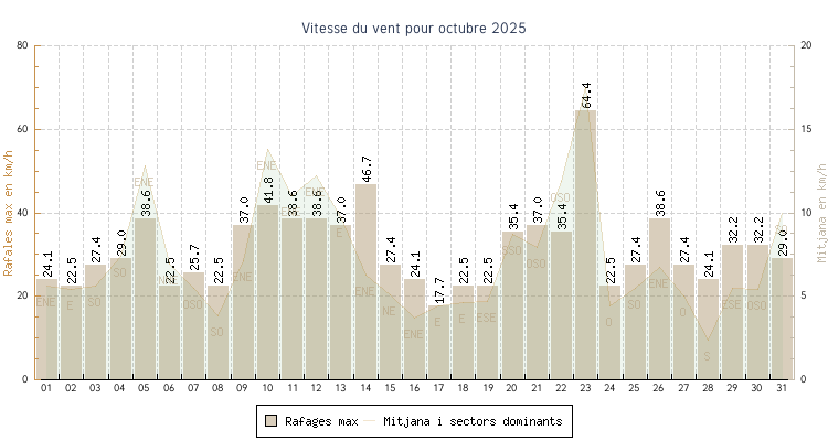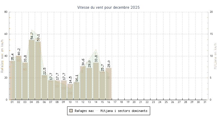 | min | max | mitjana | Velocitat (rafages) | Sector | ||