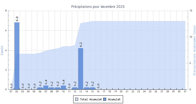 | 15 | 12.1 °C | 18.7 °C | 14.7 °C | 7.4 km/h (25.7 km/h) | ESE |