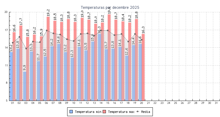 | 09 | 13.2 °C | 18.8 °C | 15.4 °C | 1.9 km/h (16.1 km/h) | SSO |