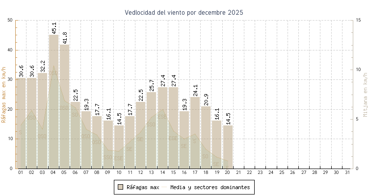| min | max | mitjana | Velocitat (rafages) | Sector | ||