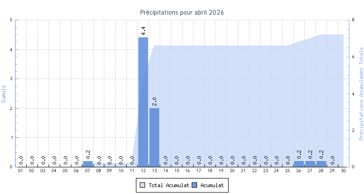 | Total | 7.2 °C | 28.1 °C | 16.9 °C | 5.5 km/h (43.4 km/h) | 7.2 mm | |