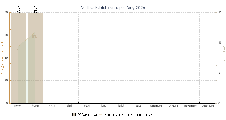 | febrer | 6.2 °C | 11.0 °C | 19.0 °C | 16.5 °C | 13.8 °C | 11.8 km/h | 78.9 km/h | NNO |