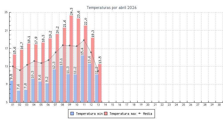 | 05 | 9.6 °C | 18.3 °C | 13.7 °C | 2.5 km/h (17.7 km/h) | S |