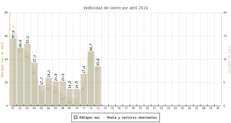 | min | max | mitjana | Velocitat (rafages) | Sector | ||