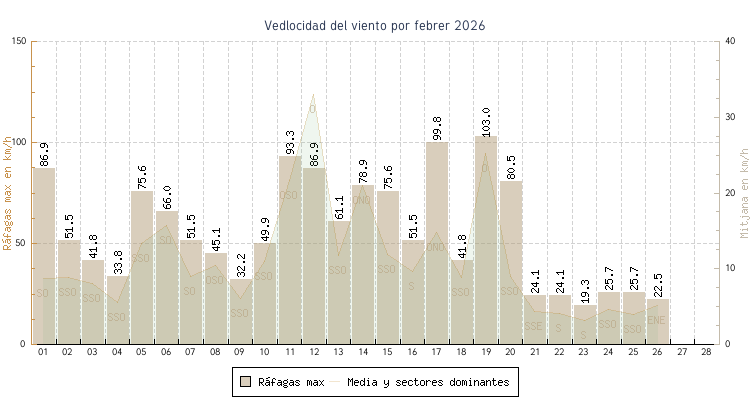| min | max | mitjana | Velocitat (rafages) | Sector | ||