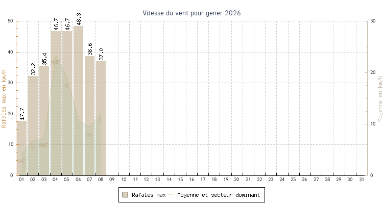 | min | max | mitjana | Velocitat (rafages) | Sector | ||