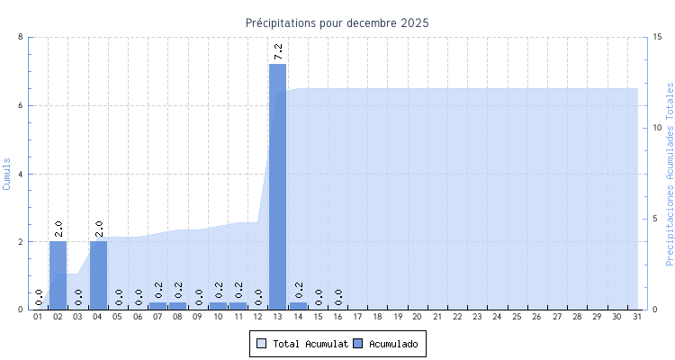 | 16 | 6.3 °C | 18.1 °C | 9.2 °C | 2.8 km/h (25.7 km/h) | S |