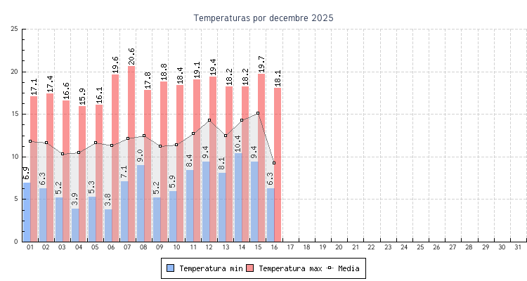 | 01 | 6.9 °C | 17.1 °C | 11.8 °C | 7.1 km/h (27.4 km/h) | ENE |