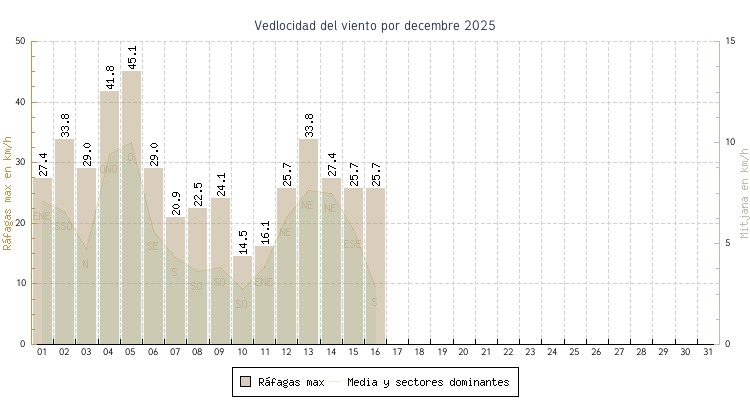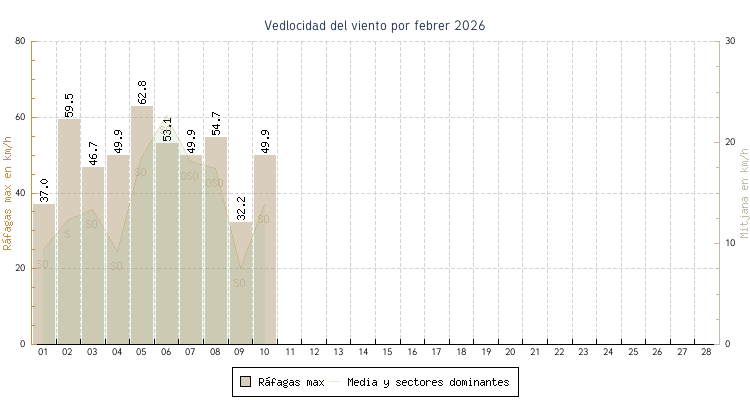 | min | max | mitjana | Velocitat (rafages) | Sector | ||