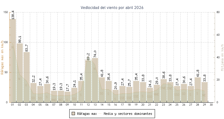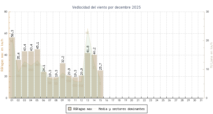 | min | max | mitjana | Velocitat (rafages) | Sector | ||