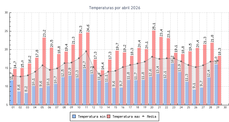 | 25 | 11.3 °C | 19.5 °C | 15.8 °C | 10.7 km/h (27.4 km/h) | SSO |