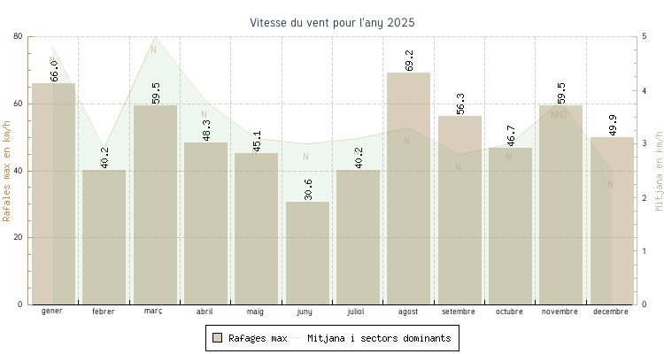 | gener | 4.1 °C | 8.0 °C | 25.3 °C | 17.0 °C | 12.2 °C | 4.8 km/h | 66.0 km/h | N |
